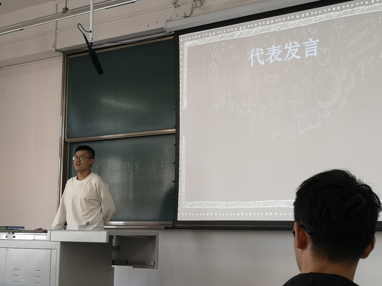 会议的第三个环节是班委竞选,我班重新选取郑龙同学、杨守康同学分别为本班团支书和学习委员。在完成了新旧班委的交接工作后,两位同学也都阐述了自己未来的计划,希望自己能够为大家做出改变,为班级建设贡献出自己的一份力量。