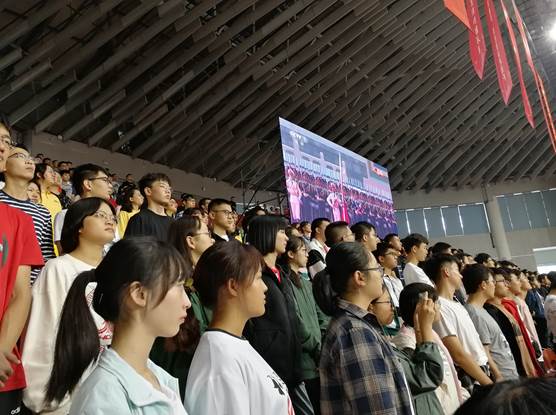 2019年10月1日10:00,应物6班在校学生一起到校体育馆观看了国庆七十周年阅兵仪式。光阴似箭,岁月如梭,我们迎来了中华人民共和国七十华诞。应物6班同学们报以极其激动的心观看阅兵。看军人们的英姿飒爽;国家武器装备的强大精良;人民群众脸庞上的幸福和自豪!这是一个振奋人心举国欢庆的日子,这是一场空前盛大隆重,庄严肃穆的阅兵仪式!6班同学祝福祖国繁荣昌盛,我们永远与祖国在一起!