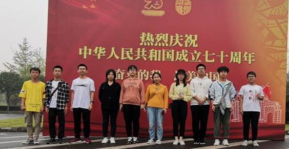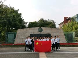 九月二十二日下午三时,团支书关欣带领二十名班级同学前往西南交通大学南门及竢实扬华碑,拍了许多展示班级风采的照片,大家都与国旗合了影。