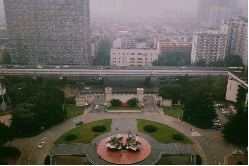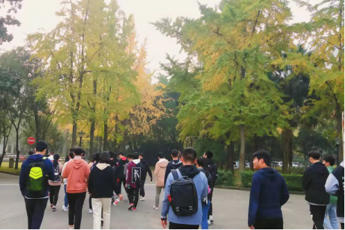 等其他班也陆陆续续到广场上集合时,我们在西南交通大学九里校区门口与身后的0号教学楼一起留下了班级合影。