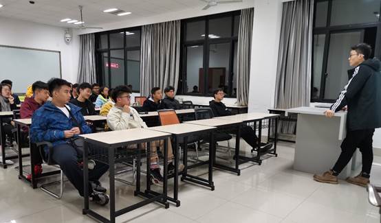 然后,由班协石金泽上台提出给同学们的学业和生活上建议:适度娱乐,重视学习,就学习方面分享了其经验之谈。同学们听后都有所裨益,表示在接下来的学习和生活中将会努力提升自己。