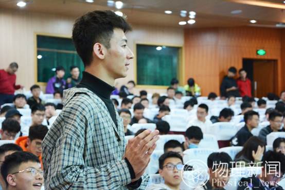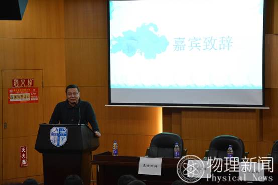 首先,郭剑老师致辞,他向同学们分享了物理科学与技术学院前辩论队的优秀成就,希望同学们能够关注辩论赛,为学院辩论队注入新鲜血液,能够在辩论赛中提升自我,用辩证思维看待世界。