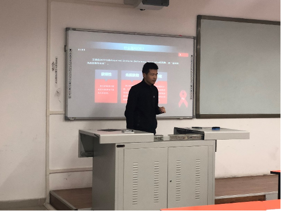 最后是由生活委员李天宇同学主持的预防艾滋病主题班会。今年的12月1日是第33个“世界艾滋病日”,主题为“携手防疫抗艾、共担健康责任”。李天宇向大家解释了艾滋病的全称、传播途径及艾滋病的预防措施。从三种传播途径出发,我们要学会在面对潜在的艾滋病威胁时如何正确地保护自己。