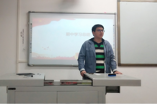 接下来由学习委员王强铭根据期中考试成绩对大家这半个学期以来的学习情况做总结。班级在数学物理方法的课程学习中总体情况良好,但在数字电子技术上的平均分和优生率并不理想。在各门科目的期中考试成绩陆续出来后,我们班委也将调整各科学习小组的同学名单,采取多种措施督促大家调整学习方法和学习状态,帮助同学们查漏补缺。