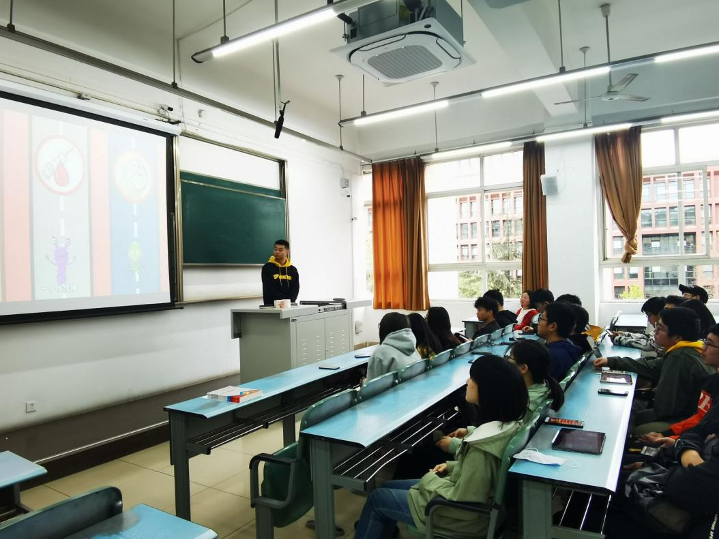 首先,鲁彦君先通过一个视频向同学们详细地介绍了艾滋病,视频向同学们讲述了“什么是艾滋病”、“艾滋病的传播途径”、“艾滋病的预防措施”等,同时视频也展示了目前为止艾滋病病毒携带者的总数和预计未来的趋势。