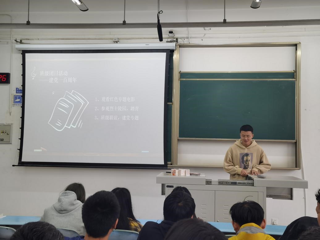 团支书姚坤就青年大学习进行了一些总结,他表示,上一期的青年大学习我们班完成得不是很好,需要继续加油。然后,他就今年建党一百周年我班的团日活动提出了自己的建议并分享了大家的想法,希望所有同学都能积极主动参与进来。