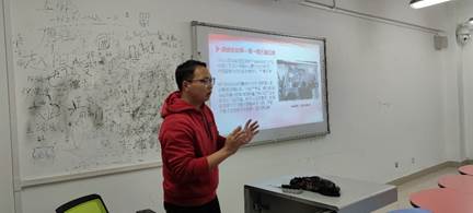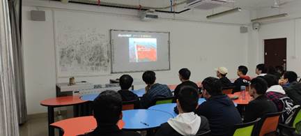 接下来由团支书杨兴浩带领大家共同学习四史。我们一同观看了《我和我的祖国》中的片段《前夜》,该部分以中华人民共和国成立前夕为背景,讲述了电动旗杆设计安装者林治远为保障开国大典国旗顺利升起,争分夺秒、排除万难,终于使五星红旗顺利飘扬在天安门广场上空的故事。