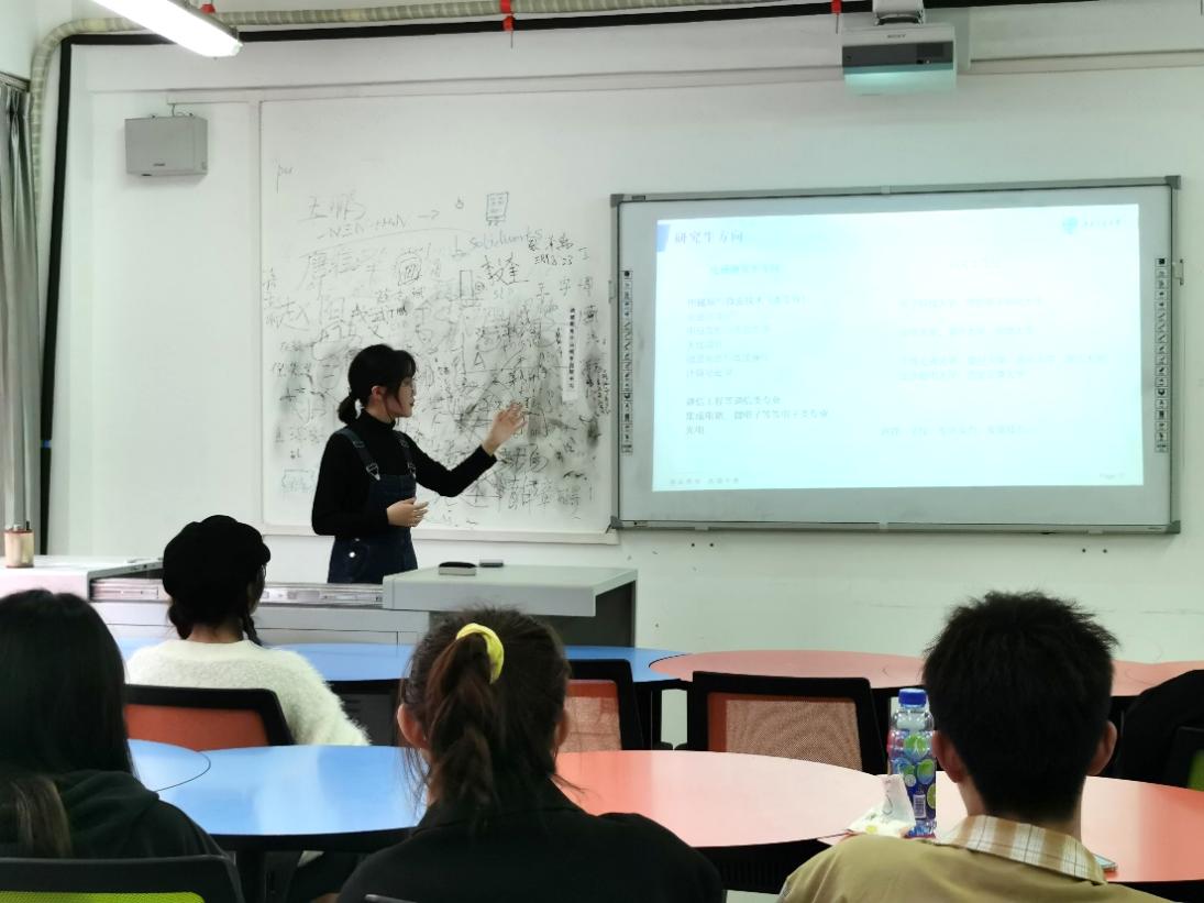 组织委员邀请事先约好的直系学姐李蔚然,为大家开了个小型经验分享会,并传授保研经验和考研途径。她强调,不但功夫要下在平时,而且需做到劳逸结合。