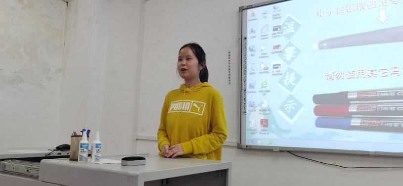其次,学习委员胡雨桐简述了上学期我们的学习情况,指出我们还存在很多问题,她着重强调了本学期的英语四六级考试,希望同学们都尽快通过考试。