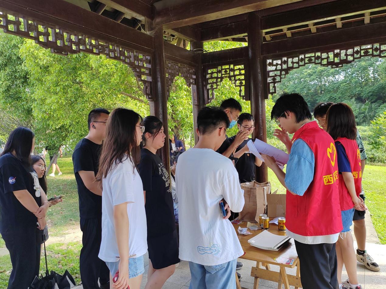To protect the campus ecological environment, the Youth Volunteer Association of the School of Physical Science and Technology held the "Campus Pet Guardian" volunteer service activity near the Xihu Lake in the Xipu campus of Southwest Jiaotong University on the afternoon of May 20, 2023. At the beginning of the activity, the volunteers first patrolled the lawn around the Xihu Lake. The volunteers, who were holding cleaning tools, respectfully cleaned up the garbage around the lake, and advised visitors to behave in a civilized manner, preventing behaviors such as feeding the animals indiscriminately and chasing and playing on the lawn. The volunteers actively participated and were responsible, making their own contribution to maintaining the campus ecological environment.