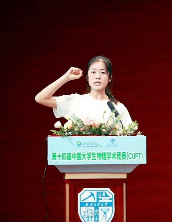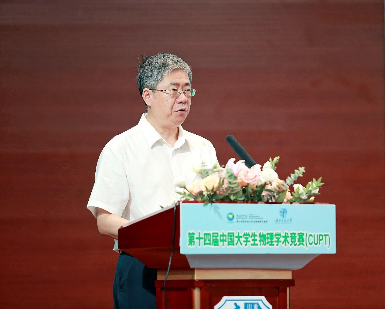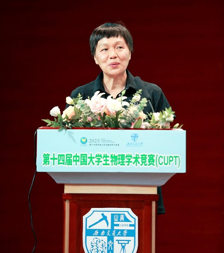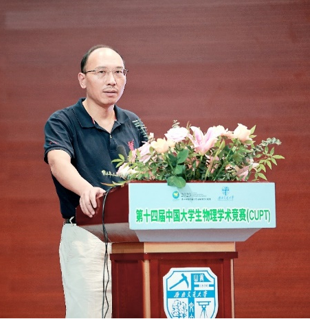 Professor Zhang Hong, Chairman of the Physics Society of Sichuan Province, addressed the audience. She noted that the CUPT provides an excellent opportunity for academic exchange and cooperation among teachers and students from various universities. The Physics Society of Sichuan Province attaches great importance to this event and is fully committed to its support. She hoped that the students would demonstrate their levels and styles through this competition and make the most of this platform for fostering academic exchange.