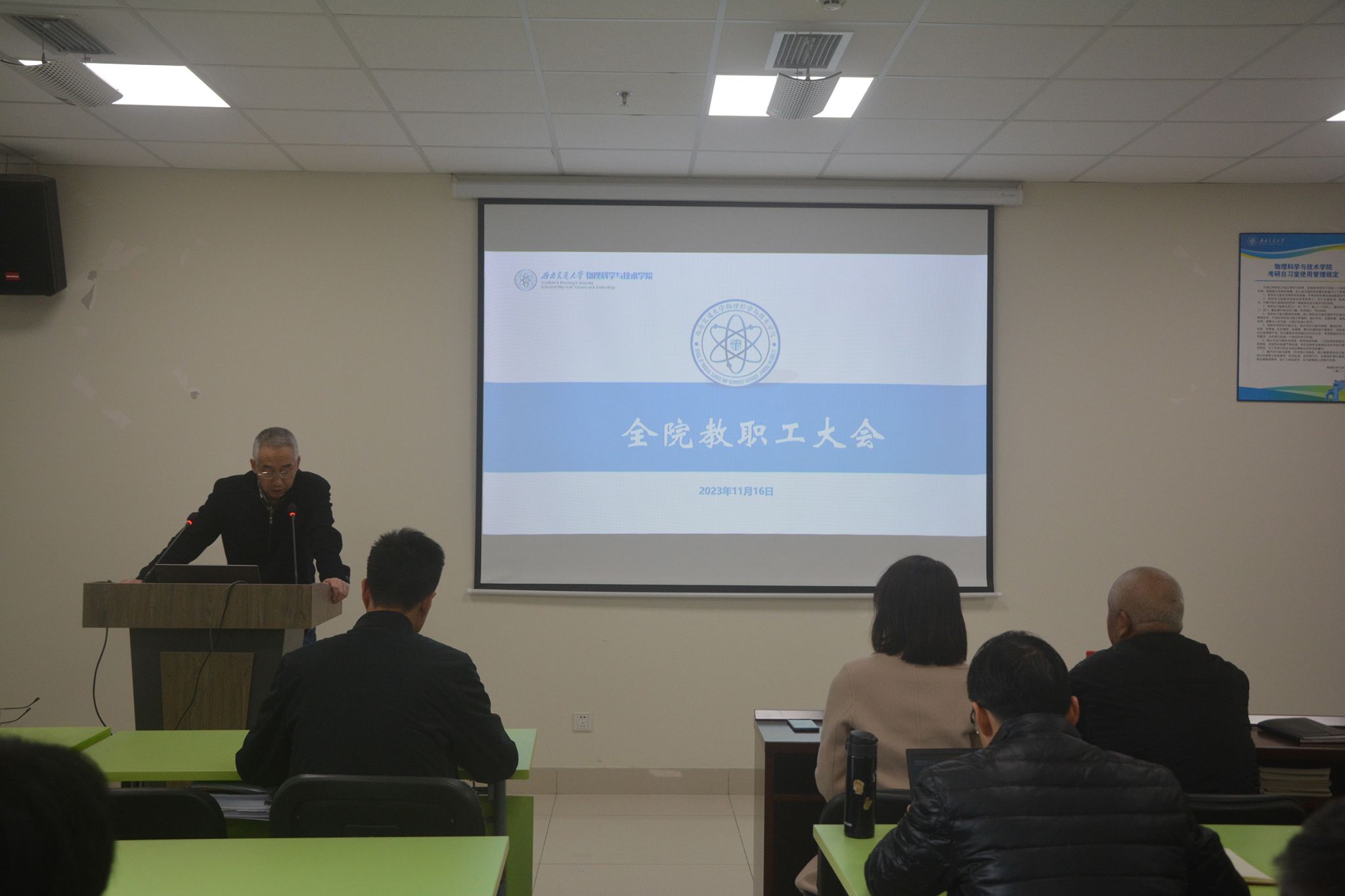 On the afternoon of November 16th at 2:30 PM, the School of Physical Science and Technology convened a faculty meeting in the X30334 conference room. Members of the school's party and administrative leadership, along with all faculty members, attended the meeting. The session was presided over by Guo Jian, Deputy Secretary of the School Party Committee and Deputy Dean.