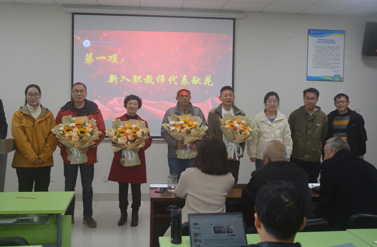 Wei Zhenxing, Deputy Secretary of the School Party Committee, presided over the annual retirement ceremony for faculty members. Amidst enthusiastic applause, retiring teachers for the current year stepped onto the stage. They received tokens of appreciation and flowers from Secretary Li Zhuohui and newly joined faculty members, capturing the moment with a group photo, immortalizing their cherished years at the School of Physical Science and Technology. The ceremony also introduced the new faculty members who joined the school this year, symbolizing the seamless transition and the shared commitment to the ongoing success of the school.
