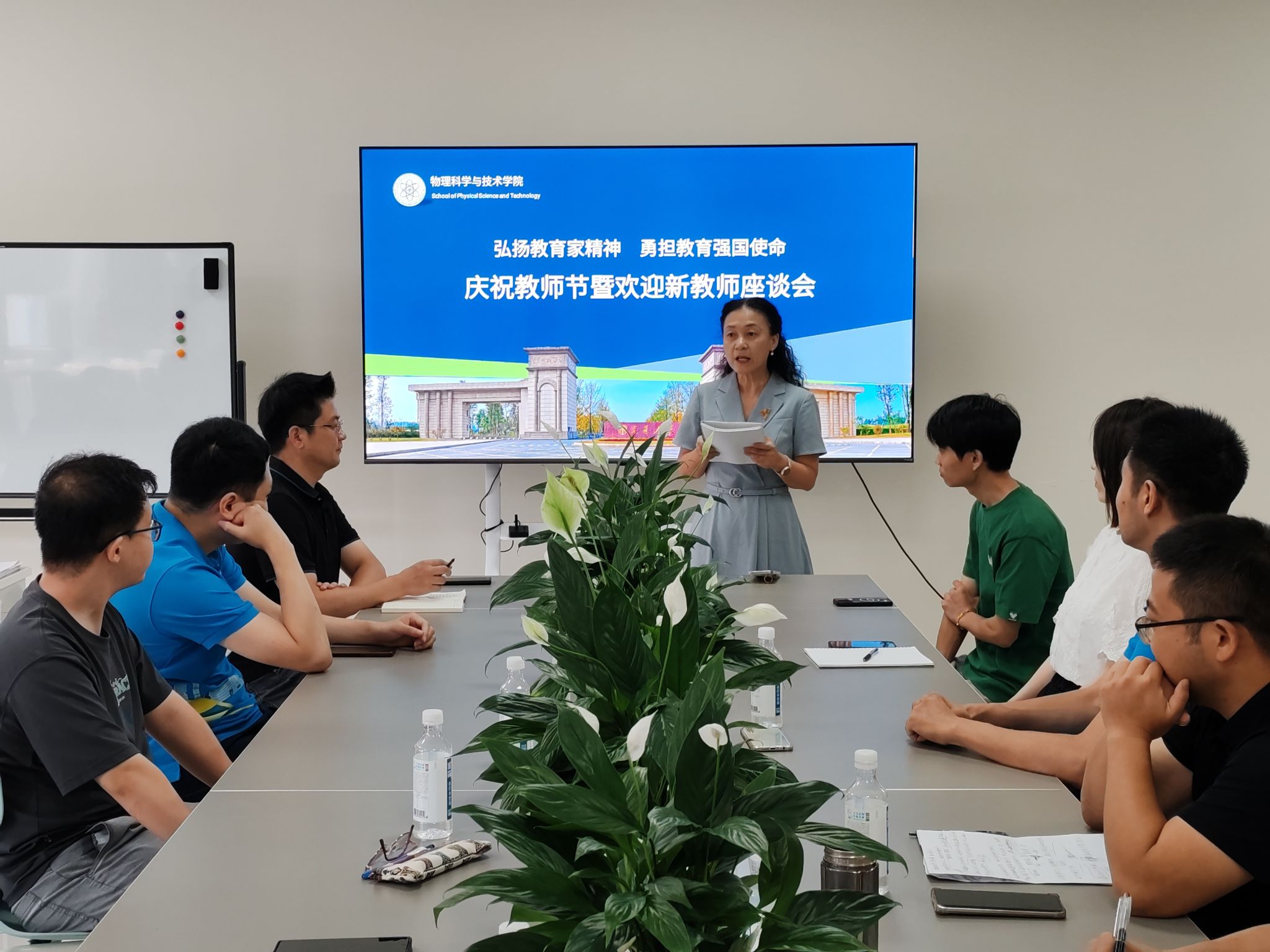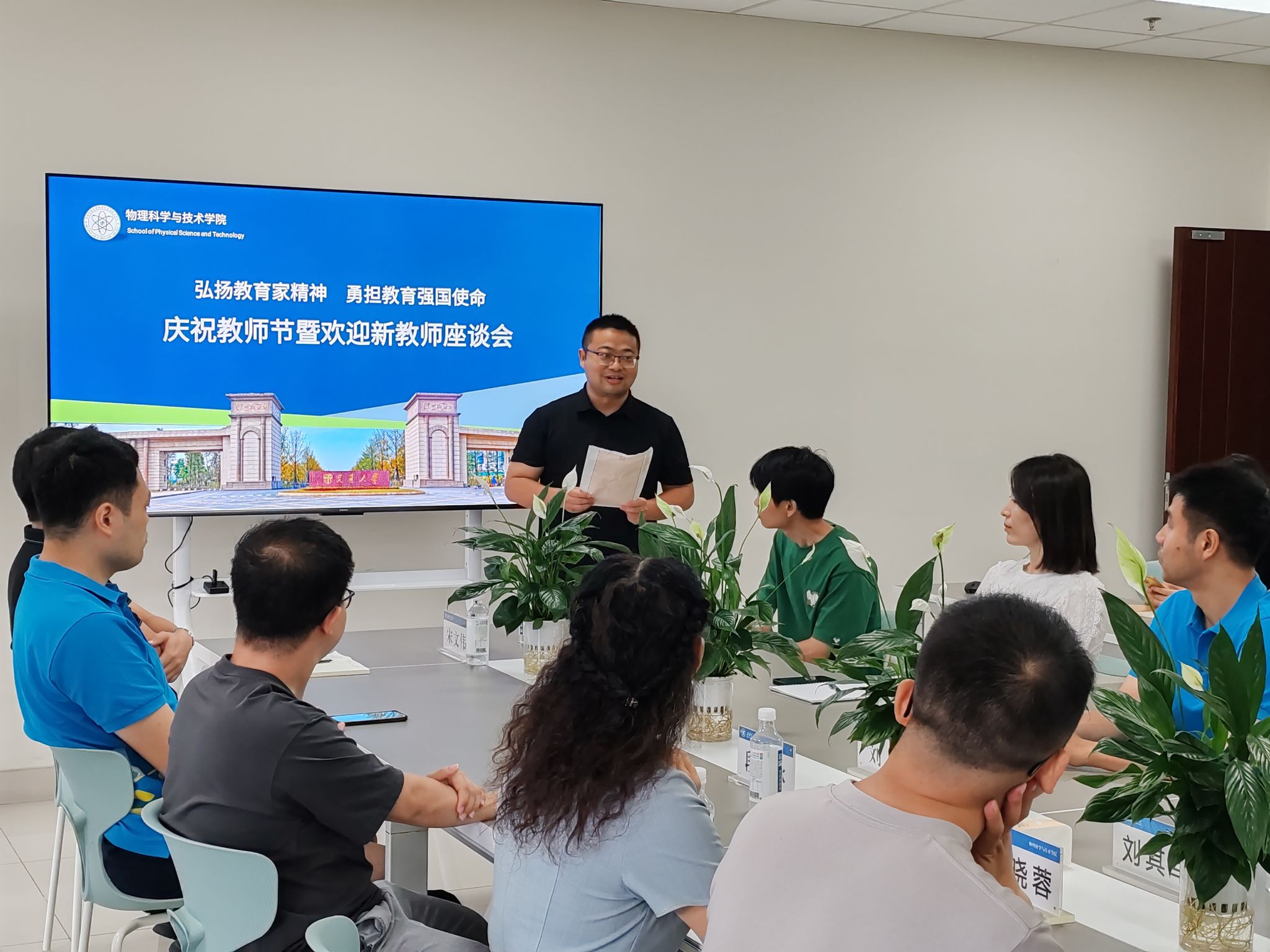 On the morning of September 10, the School of Physical Science and Technology held a seminar titled "Promoting the Spirit of Educators and Courageously Shouldering the Mission of Strengthening Education for the Nation" in meeting room X30323 to celebrate Teacher's Day and welcome new faculty members. The meeting was attended by the college leadership team, department heads, newly hired teachers, as well as representatives from both young and experienced faculty. The seminar was chaired by Li Zhuohui, the Party Secretary of the college.